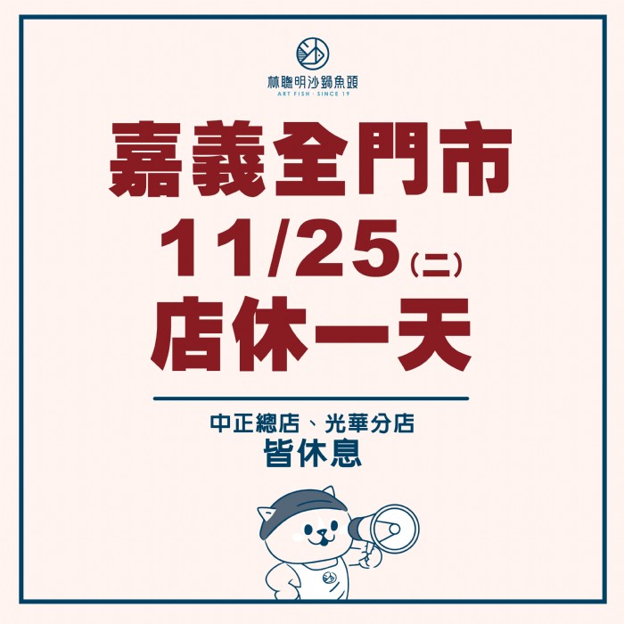 林聰明沙鍋魚頭嘉義全門市將於11/25(二
